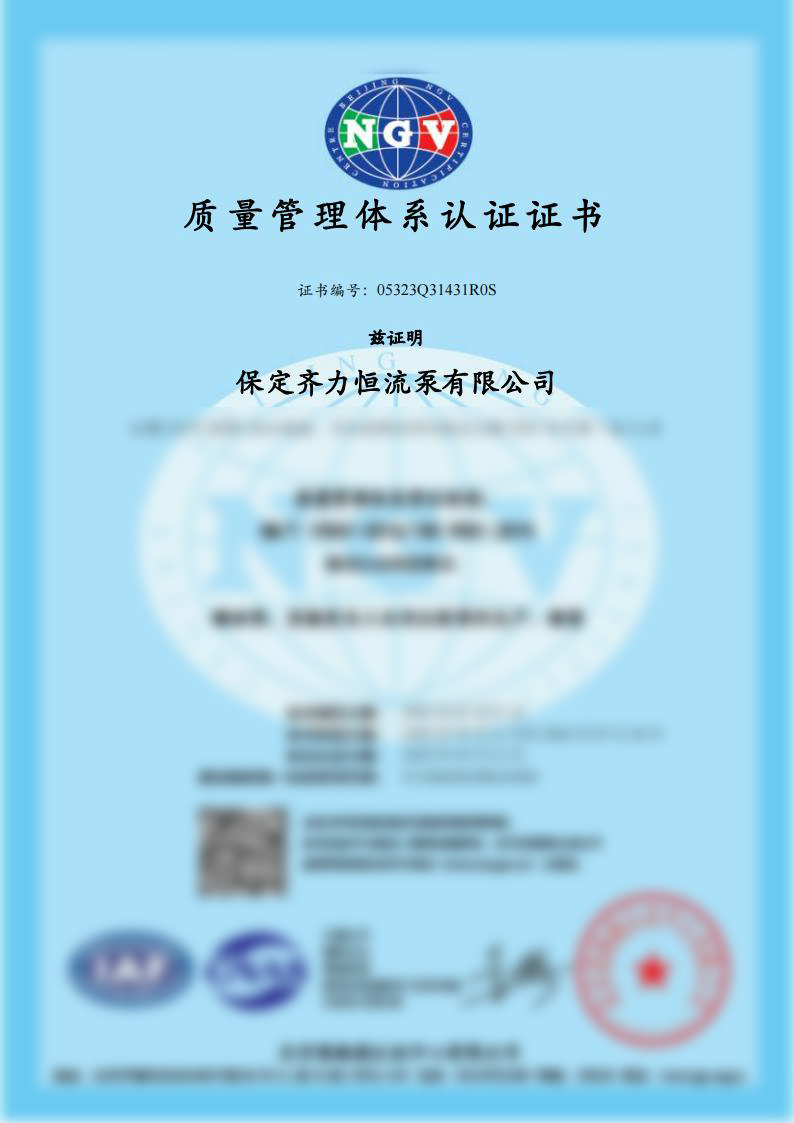 *齊力恒流泵品牌產(chǎn)品具有一年保修和終身維護。
