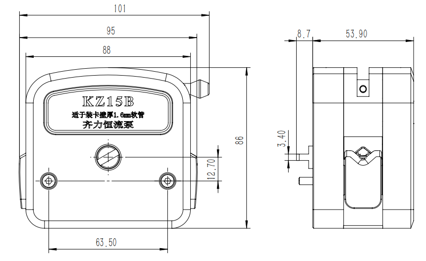 KZ15B?泵頭是一款易裝型泵頭,泵頭外殼采用鋁合金材料,表面特殊處理,耐腐蝕。滾輪采用不銹鋼材質(zhì)。泵頭采用壓塊與本體分離的結(jié)構(gòu),可快速更換軟管,適用于 1.6 壁厚軟管,可適配多種軟管,管卡可調(diào)節(jié),泵頭運(yùn)行平穩(wěn)。流量可達(dá) 0.0058~2100ml/min。